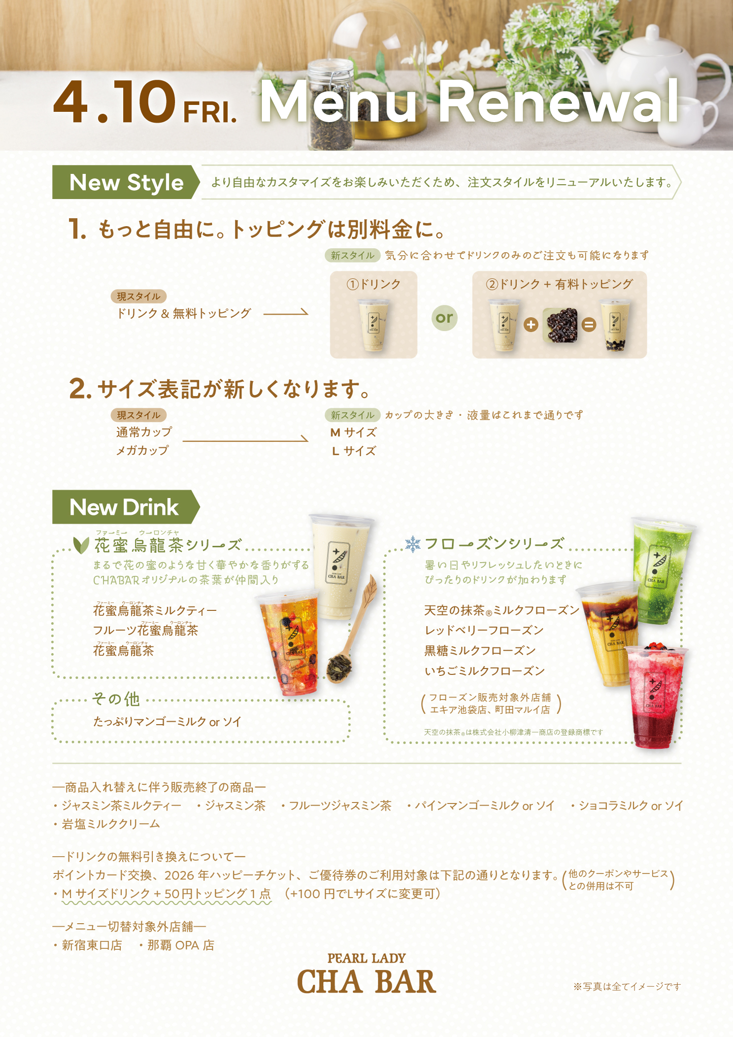 新宿東口店、那覇OPA店は2026年グランドメニューのリニューアルの対象外となります。
